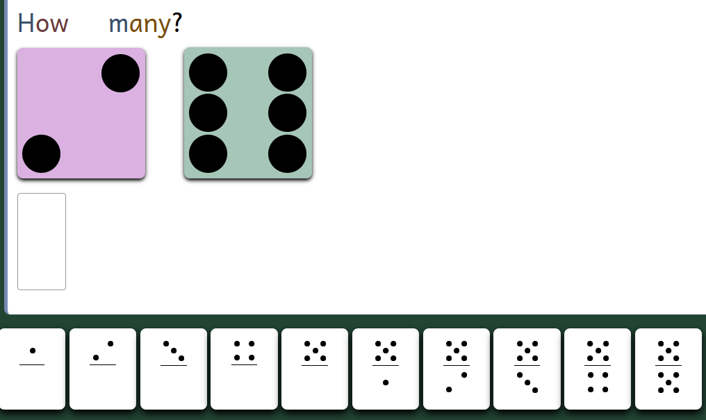 Note also, in the above example, the specific visual representation discourages adding by counting from zero - something dyscalulic students are inclined to do.
